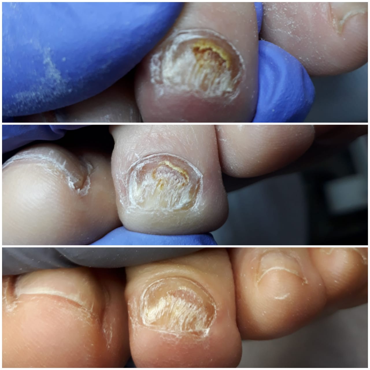 En podología moderna, algunos profesionales utilizan equipos de luz pulsada de espectro completo con longitudes de onda adecuadas para trabajar sobre casos de onicomicosis dentro de protocolos profesionales. Este tipo de tecnología se emplea como complemento del tratamiento, ayudando a mejorar la evolución clínica y favoreciendo el crecimiento de una uña de mejor aspecto.